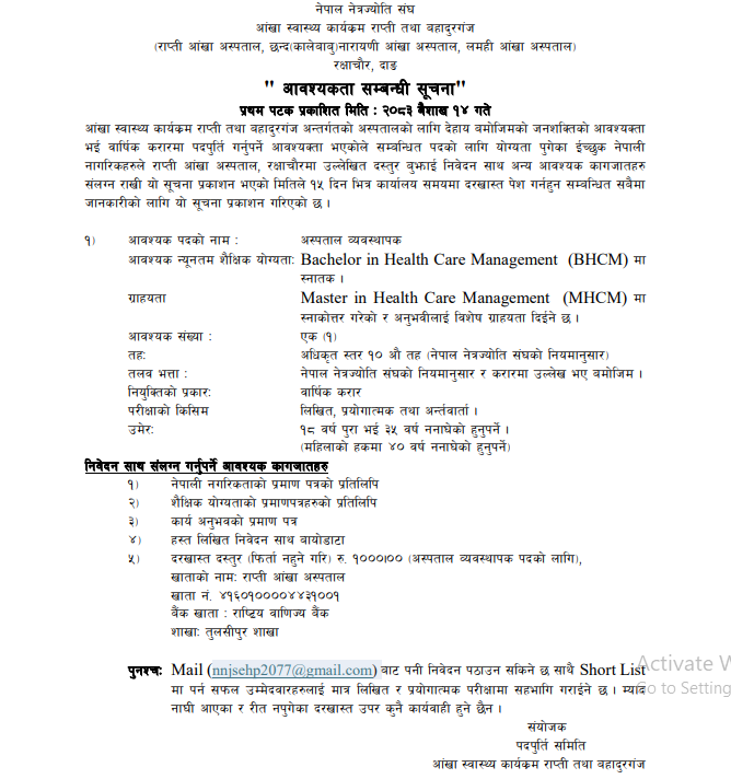The Eye Health Program in Rapti & Bahadurganj aims to prevent blindness and improve vision by offering healing, educational, and supportive services. They seek to educate people about eye health and promote awareness so that people can take care of their eyes and avoid avoidable blindness. The program is dedicated to eliminating avoidable blindness by providing eye health education, training, and advocacy. .
